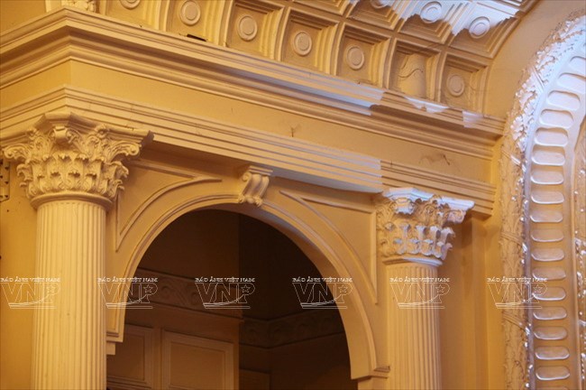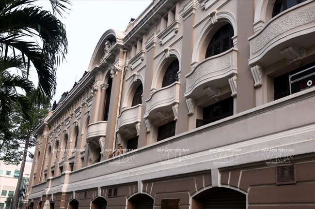 Hệ thống các ô cửa vòm với dãy lan can nhô cao mang đậm nét kiến trúc cổ điển Pháp.