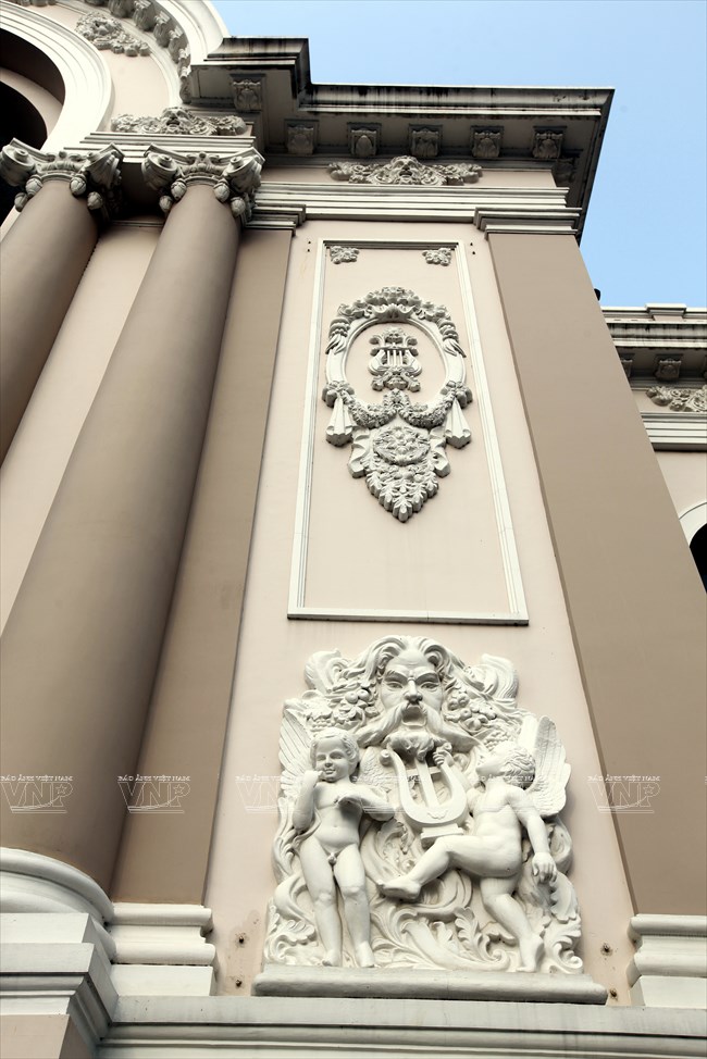 Nghệ thuật trang trí điêu khắc rất được coi trọng trong tổng thể kiến trúc nhà hát.